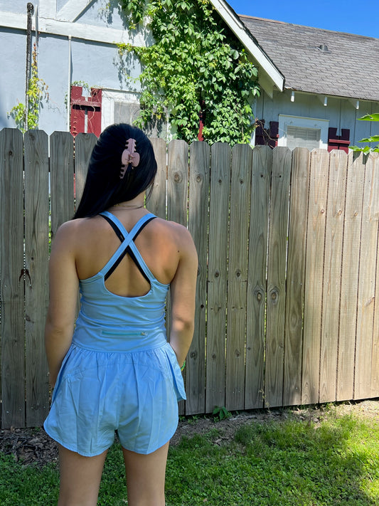 On the Run Athletic Romper- Baby Blue