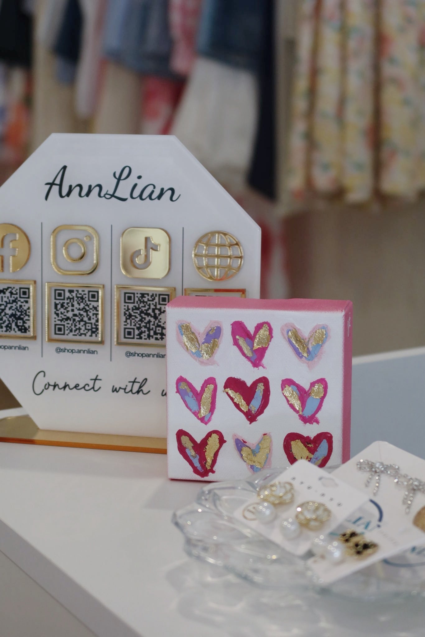 This hand-painted heart piece features rows of vibrant, glitter hearts—bringing color, charm, and all the happy energy to your space! Whether you’re decorating your college house, dorm, or gifting it to your bestie, it’s the perfect statement of sweetness and style!