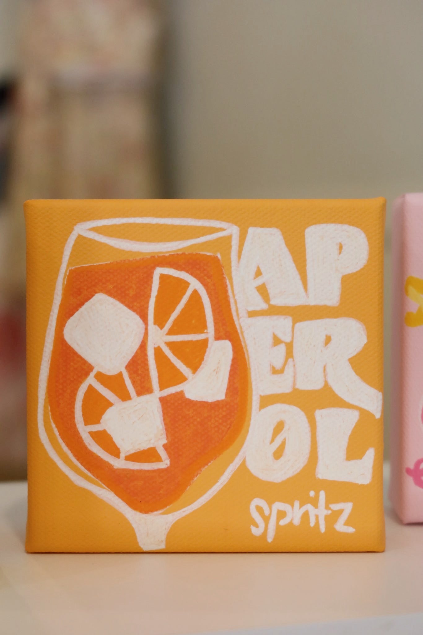 This Aperol Spritz mini painting is giving European summer energy all year long! Its bright orange tones and glittery details, it’s the perfect piece to liven up your college house, bar cart, or gallery wall with a pop of playful color!