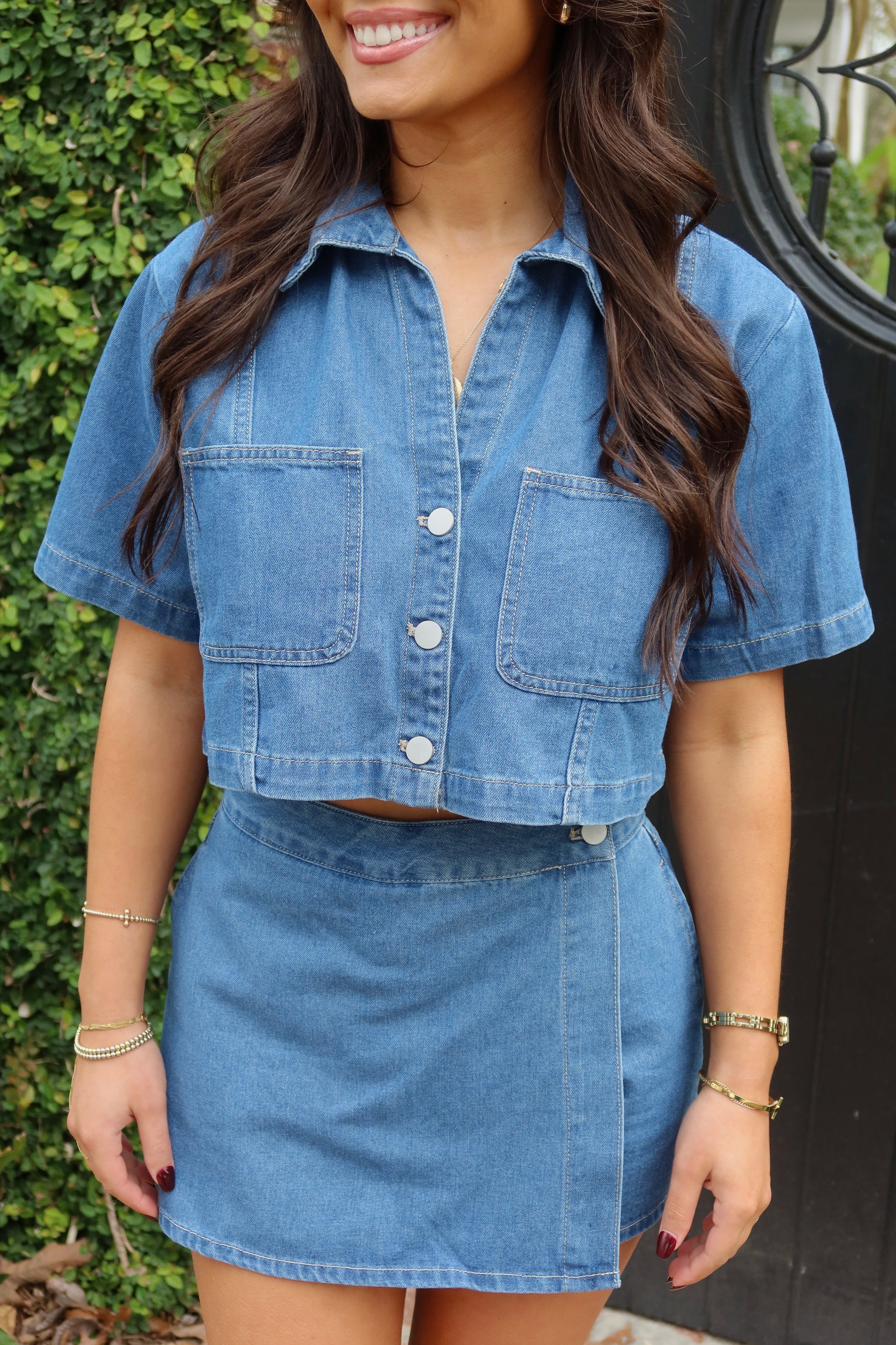 - Our 'Ashton' top features a v neckline, front button down, front pocket detailing, with matching skort sold separately.
