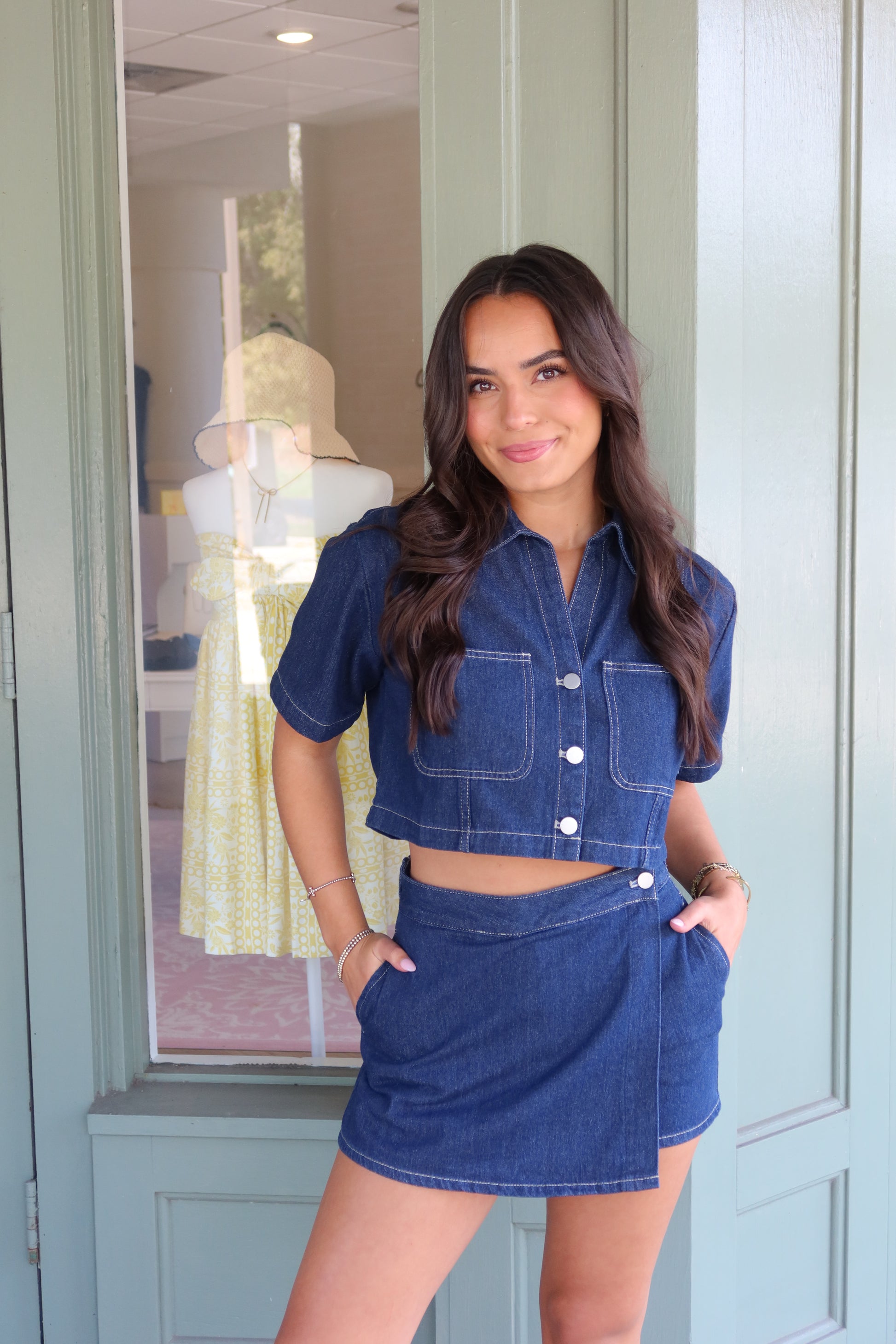 - Our 'Danielle' skort features a high waistline, includes pockets, front button enclosure, and a matching top sold separately.