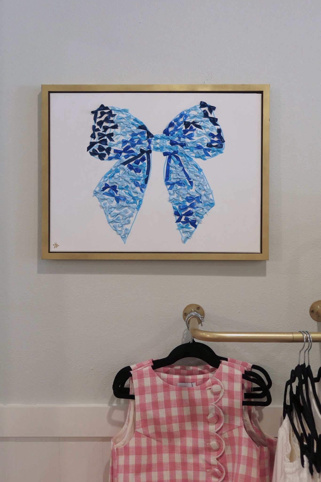 This art piece features a dreamy oversized blue bow, delicately filled with 3D mini cloth bows tucked inside! It’s the perfect mix of girly and whimsical, made to add a playful yet polished touch to your college house, dorm, or vanity wall!