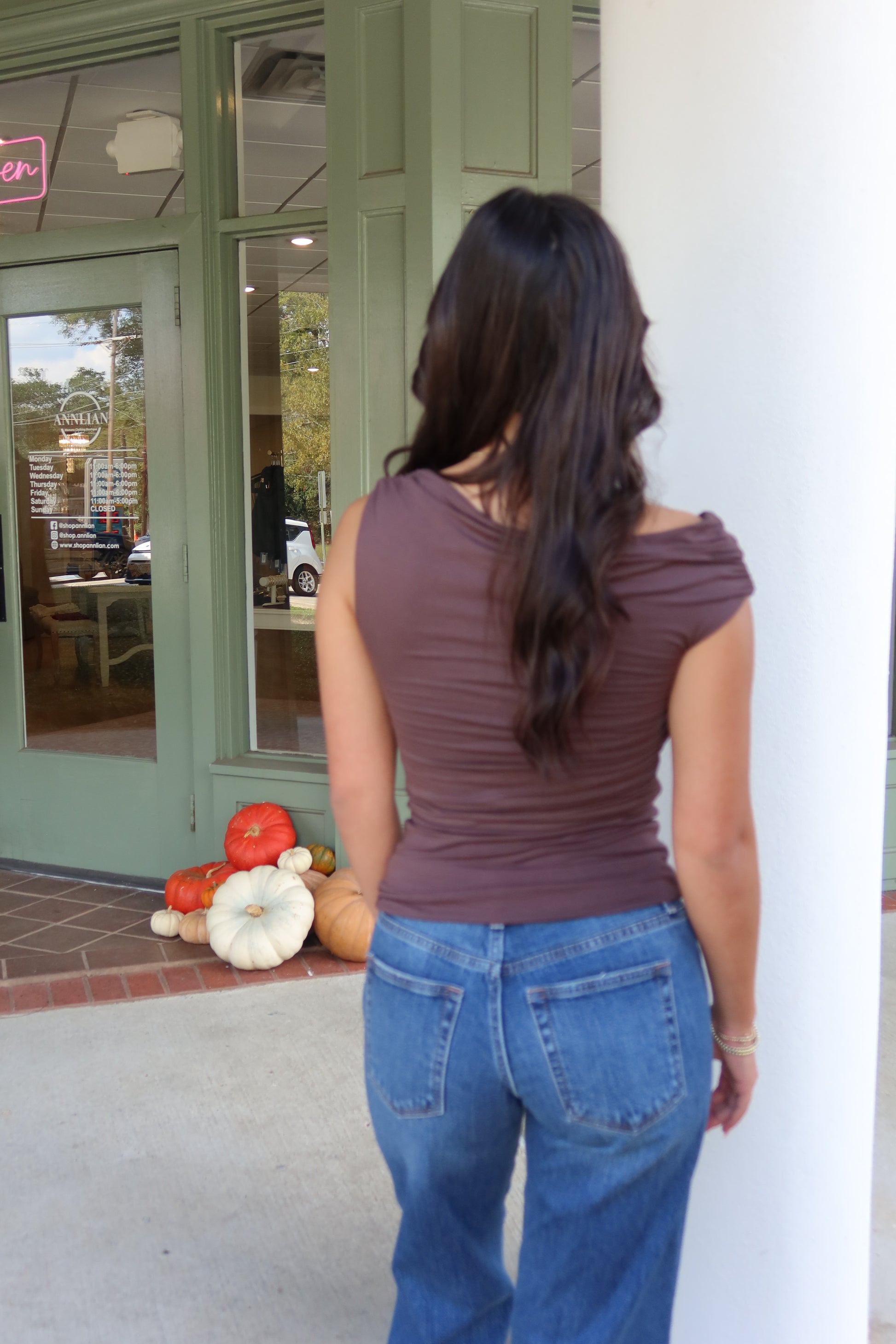 - Our 'Makayla' top features a one shoulder, soft stretch fabric, double lined, and ruched detailing.