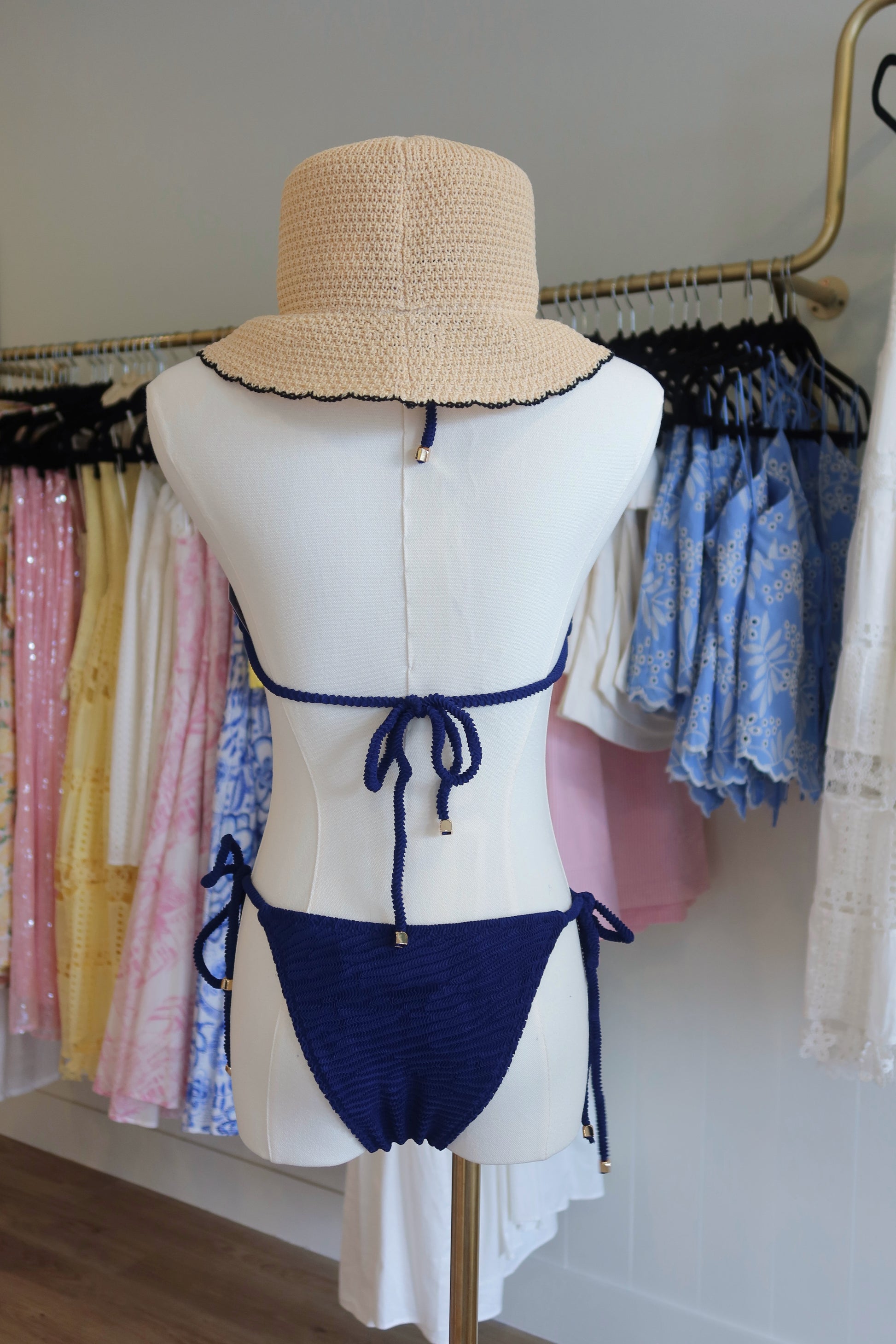 - Our 'Rylie' bikini bottom features a cheeky cut, fully lined, adjustable ties, gold hardware detailing, seamless fit, with a matching bikini top sold separately.